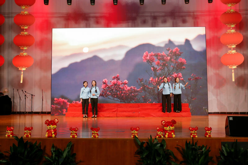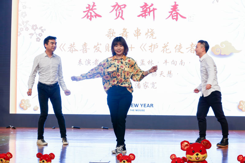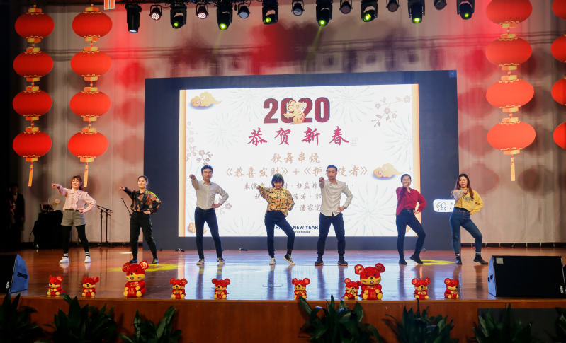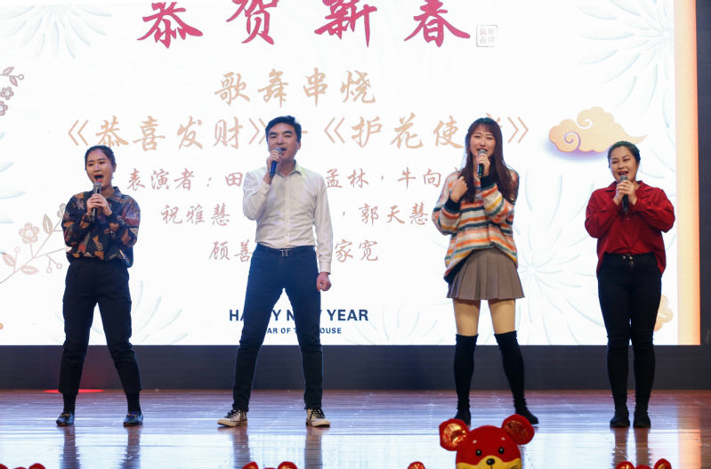 (艺术设计学院歌舞串烧《恭喜发财》《护花使者》点燃现场,让大家感受到了浓浓新年味。)