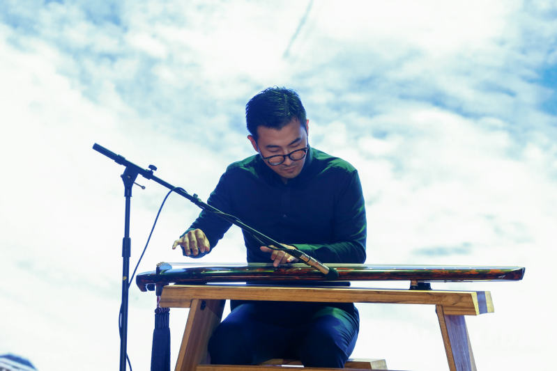 (机关一工会古琴独奏《酒狂》将现场带回魏晋竹林下,纵歌酣畅尽风流。)