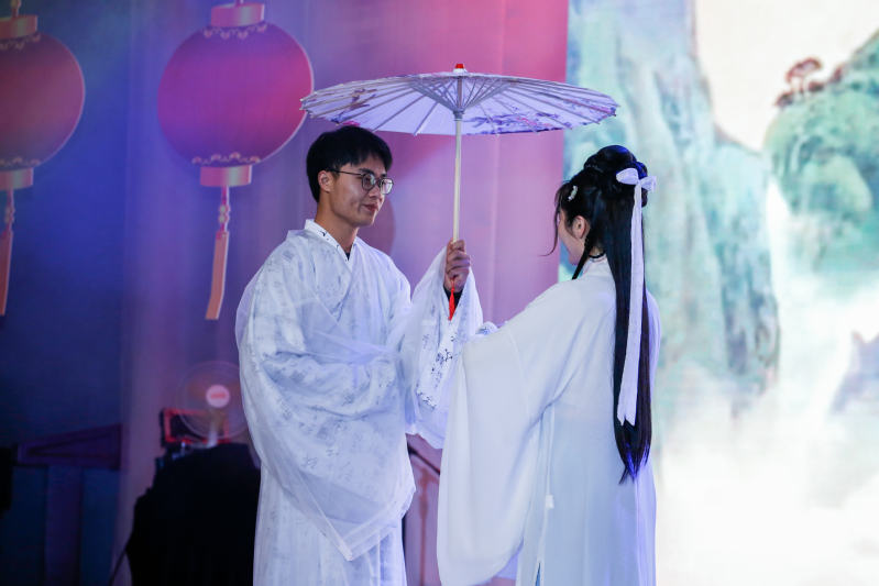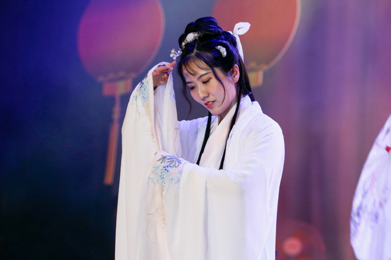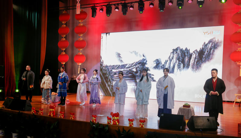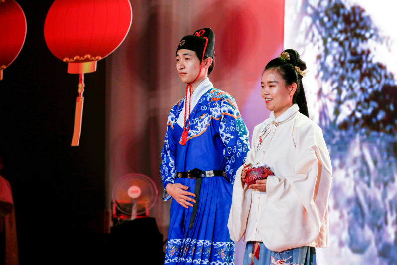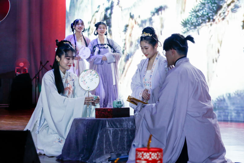 (珠宝学院带来汉服秀《金声玉振》,展示泱泱中华礼仪之邦的古典传承。)