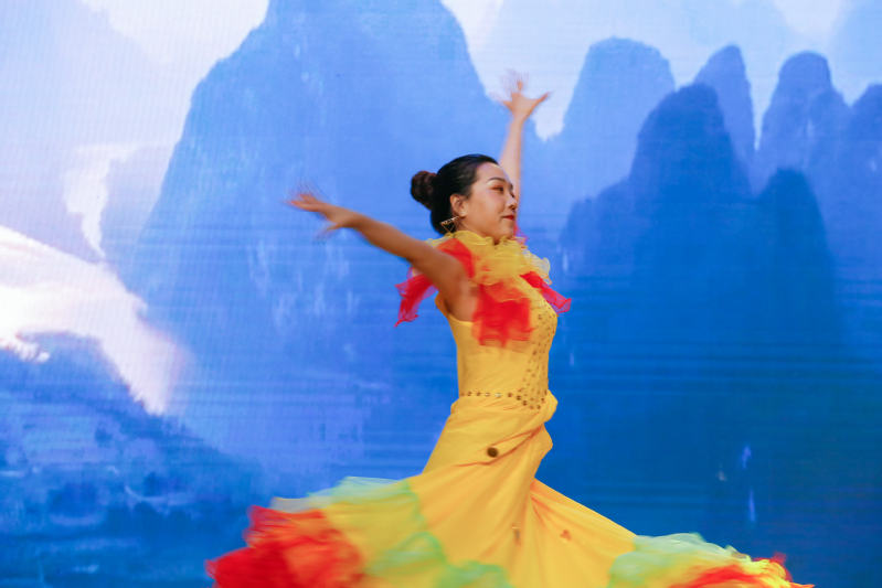 (信息技术学院寄情于舞蹈《天耀中华》,表达了对祖国的美好祝福。)