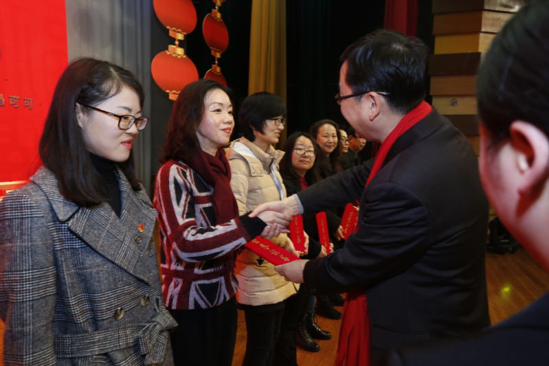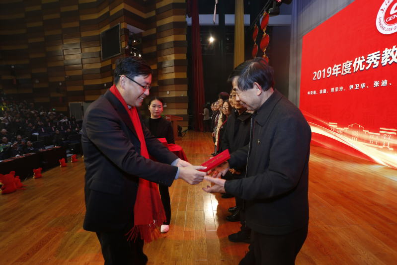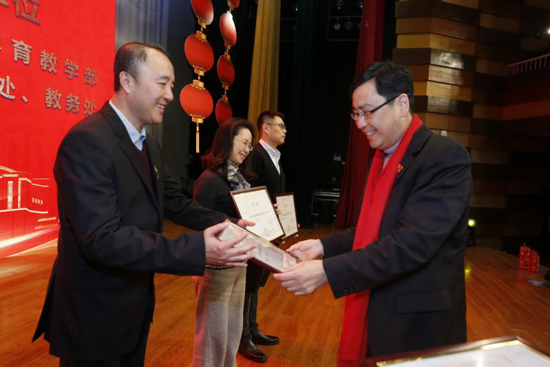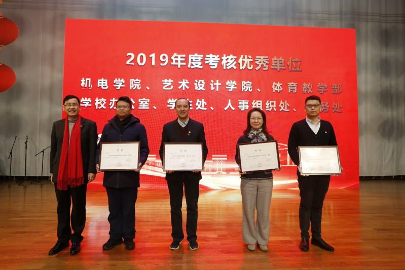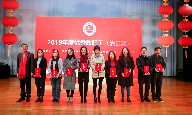 夏雨副书记主持大会,宣读2019年度考核优秀二级单位、优秀教职工(清云奖)、优秀系主任、优秀教学奖、优秀辅导员、教师雷锋奖获奖名单。校领导为获奖集体和个人颁奖,并合影留念。