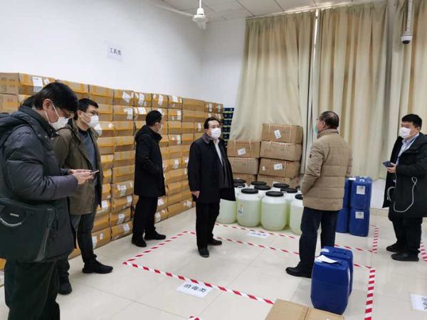 沈炜书记一行还实地参观了学校应急指挥中心、防疫物资仓库,听取了学校信息化部门关于“建桥i健康”系统的情况介绍。