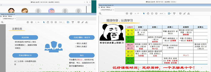 随后,吴老师强调了本学期的主要任务是加强对专业课程和英语四六级、韩语等级考试、全国计算机一级和普通话等级考试等相关考试的学习。并根据课表详细介绍了各班本学期的课程以及本周试课的各种注意事项。在此环节中,吴老师重点强调了出勤的要求,尽管是线上授课,但仍需严把考勤关,考勤班长、课代表和任课老师双向沟通,及时汇报出勤率。