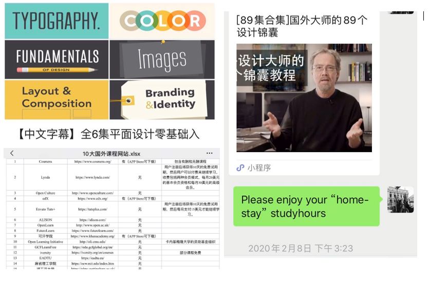 在金晓磊老师的牵头下,国际设计学院建立分组微信群,覆盖学院所有的学生,确保24小时在线,克服了人员分散在不同国家的时差问题,确保教学课程外的实际设计项目,顺利进行。学生、老师、项目方,通过在腾讯、微信等平台,多线并进,实现线上讨论,设计提案等,并按节点阶段性会议的模式,确保准时保质保量完成项目任务。