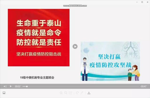 尤其值得一提的是,学工团队结合疫情防控中的鲜活素材作为典型教材,利用网络“空中课堂”做好学生思想引领工作,积极构建“云上思政”大格局,引领广大学生在战疫中成长。从2月底至3月,30名辅导员已经通过腾讯会议、钉钉等新媒体平台组织100余场在线班会课,内容涵盖“师生心连心,携手共战‘疫’”等主题系列网络“云班会”。通过这个模式,很好地加强学生的思想教育和价值引领,对学生“宅”家的学习生活进行指导,引导学生科学防疫。