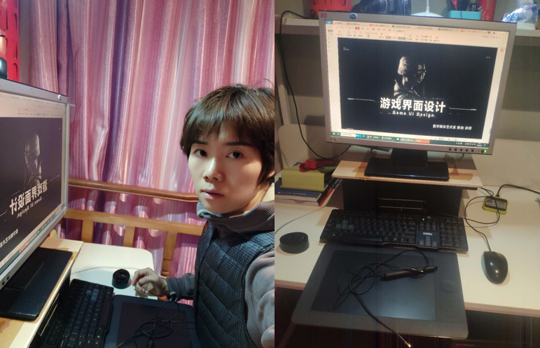 受疫情影响,学院一位兼职老师的《游戏界面设计》课程不能正常教授,数字媒体艺术系陈劲老师临危受命,承担了两本专业核心课程的教学工作。“时间仓促,学校要求又比较高,该课程课时总数为64课时,属于专业必修课,对于游戏专业来说该门课程非常重要,内容涉及面广,对老师的专业度要求很高”,为了讲好这门高要求的课程,陈劲老师连续熬夜一个星期,在网络上找资料,将教材吃透,为范画做准备等等一些列的工作,终于高水准的完成了课程的资料整理和上传工作。
