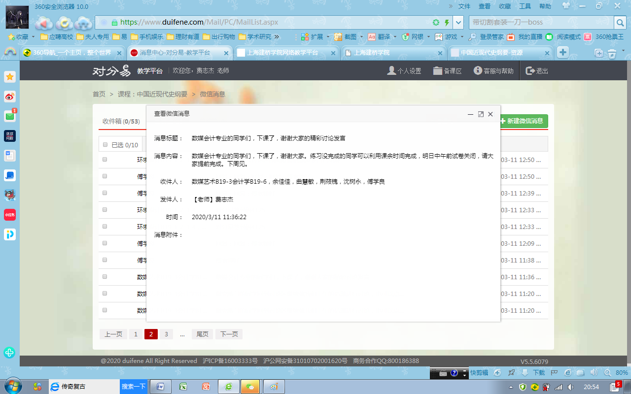 费志杰是马克思主义学院今年新进的一位副教授。初来乍到,适逢此次抗疫背景下思政课的在线教学改革。费志杰适应新形势的需要,及时调整教学方案,把在线《中国近现代史纲要》课程讲得有声有色。