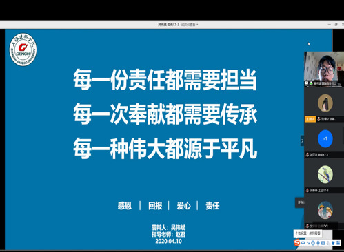 根据《上海建桥学院优秀毕业生评选实施办法》等相关规定,答辩采取学生申报、辅导员推荐、学院答辩选举方式进行评审。二十四名候选人按照抽签顺序进行答辩,通过五分钟的PPT从学习成绩、个人荣誉、校内外活动、疫情期间志愿小故事和感动瞬间,及就业、升本各方面讲述自己三年来的心得体会。在各位评委老师与学生互动与交流中,了解关心学生个人发展前景,即使线上答辩也拉不开师生间的情谊。