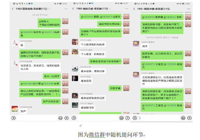 为了提高学生学习效果,用多种方式对学生进行管理。针对平时学习不自觉的同学,在线上课堂里随机提问的方式进行提问,问题较简单,跟课程内容紧密联系,主要为了监督学生是否有在认真学习;针对学习自觉的同学,采取抢答方式,提问一些与实践结合, 有一定难度的问题,引导学生进行发散思考。