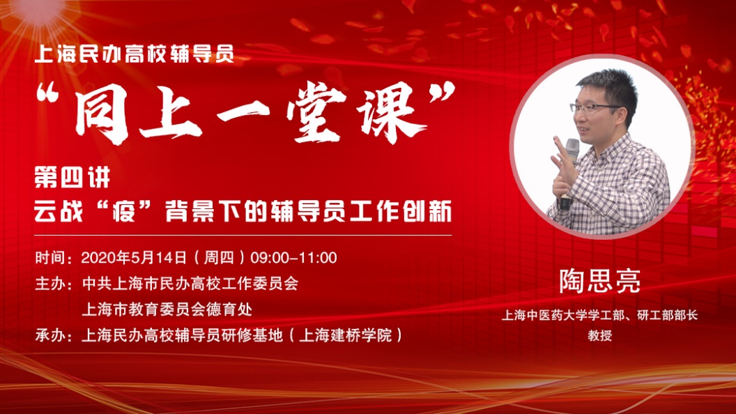 514日上午,上海民办高校辅导员“同上一堂课”第四讲邀请到了上海中医药大学学工部、研工部部长陶思亮教授,他为辅导员们带来了题为《新时代高校辅导员工作创新的理论与实践》的专题讲座。陶思亮教授从辅导员工作“为何要创新”“如何创新”“如何持续创新”三个方面发问,带领学员们一同思考与反思,一同破题与解题。