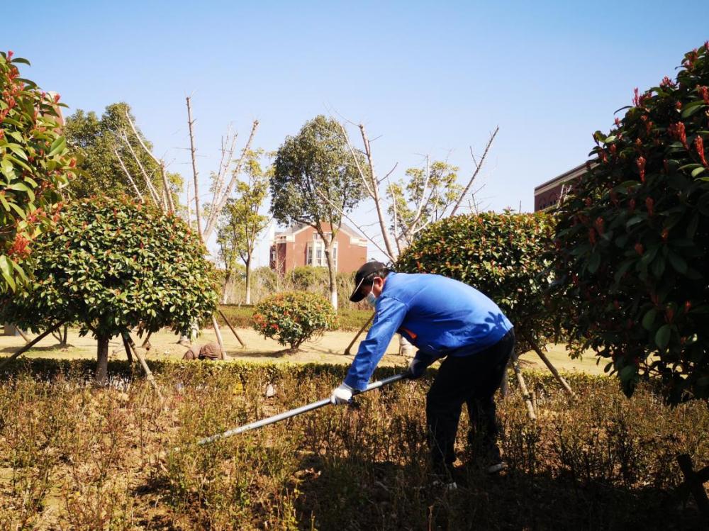 随着春季绿化大好时节的到来,为切实打好全年绿化养护管理基础,全力推进绿化管护工作,学校及后勤部门打响疫情防控和绿化复工双项战疫。落实绿化外地返沪员工隔离、消毒杀菌、人员防护、物资发放等防疫保障措施,在保证养护工人健康安全的前提下,有序推进绿化复工,确保疫情防控和绿化养护两不误。