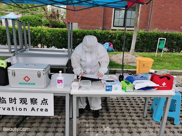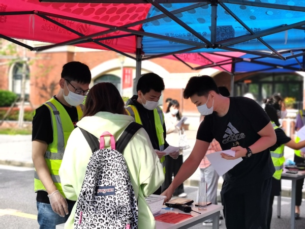 考试当天,根据自主招生考试相关经验,针对上海考生及外省考生人数相应开通6条上海、4条外省,共开通10条入校通道,临时医学观察点及防疫专用车准备就绪,各区域工作人员提前到岗就位。考生排队、测温、消毒、身份核验等各个环节有序进行。