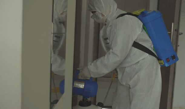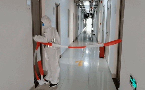 在入住学生宿舍演练场景中,宿舍门口进行测温、消毒、身份核验后,经楼梯及电梯有序进入宿舍。宿舍发烧学生报告医务室或值班室后,医务人员及时到达宿舍进行体温复测,确认体温异常,启动应急处置。物业消毒人员对发热学生的宿舍进行消毒处理。同宿舍同学在寝室隔离,直至发热学生排除新冠可能后解除隔离。