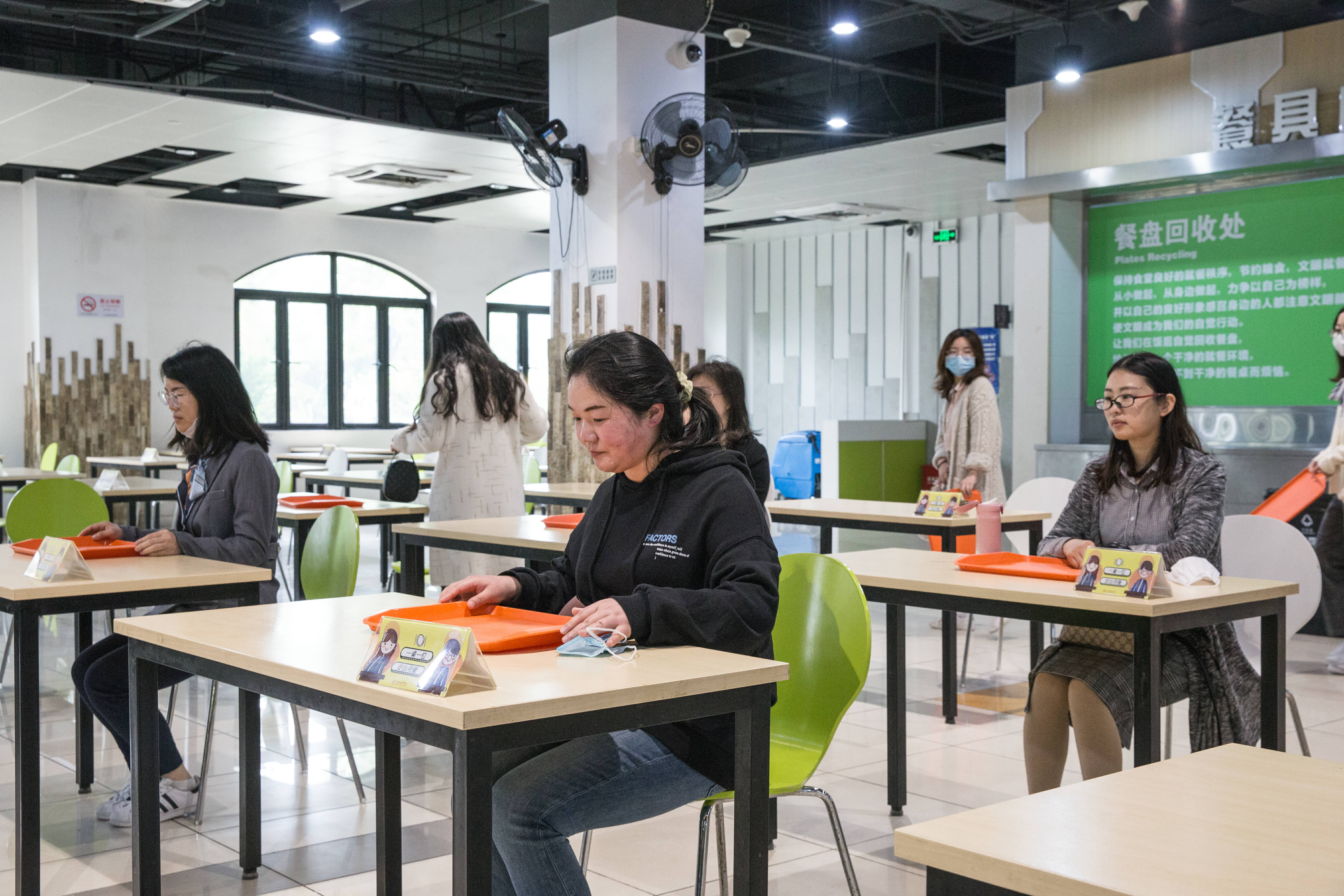 场景三:模拟学生进入饭堂就餐,发现发热学生应急处置场景