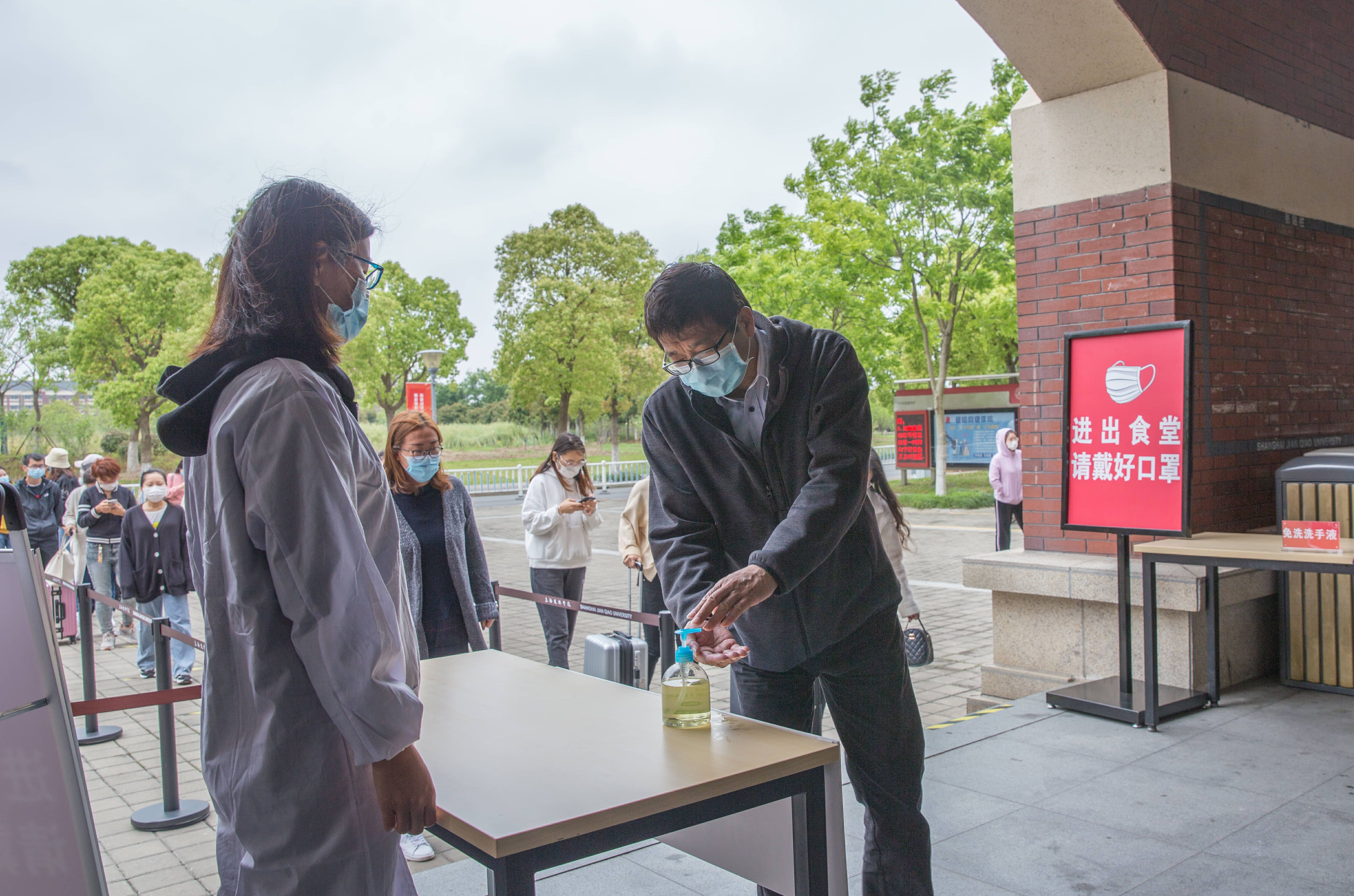 此次疫情防控应急演练分为校北门学生返校流程、北区学生宿舍发热实景演练以及食堂取餐、就餐以及高峰堂食限流三个场景。