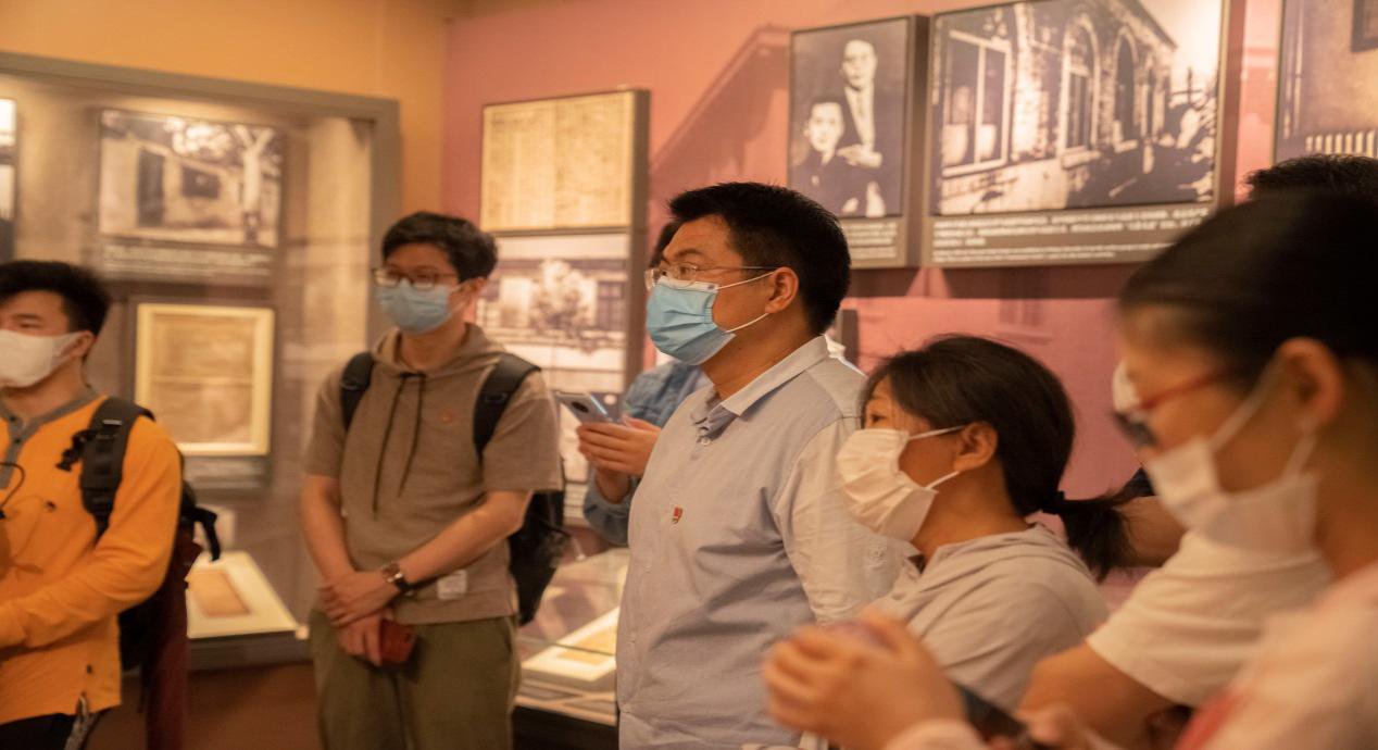 6月20日上午,新闻传播学院党委各位党员同志集合中共一大会址纪念馆。展厅内,新闻传播学院党委副书记吴成皓领誓,师生党员们在党旗下重温入党誓词。通过现场讲解、摆件还原、影片再现等方式,百年前这场决定中国命运的会议再次生动地呈现在大家面前,浓厚的学习热情与爱国情怀洋溢充斥在每位同志的眼眶与内心之中。