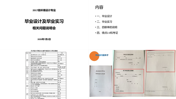 会议首先对2017级毕业设计及实习工作作了说明,讲解强调了毕设和实习的注意点。会上,景观专业负责人尚晓倩强调了师生联系的重要性,希望同学们能够关注自己的绩点,做好毕业前的准备。刘冰老师希望同学们能够珍惜转瞬即逝的大学时光,并预祝大家顺利完成毕设顺利毕业。室内专业负责人余卓立通过一个与毕设有关的小故事,希冀同学们能够认真对待毕业设计的每一个环节,为自己的大学生涯负责,切不可因小失大。
