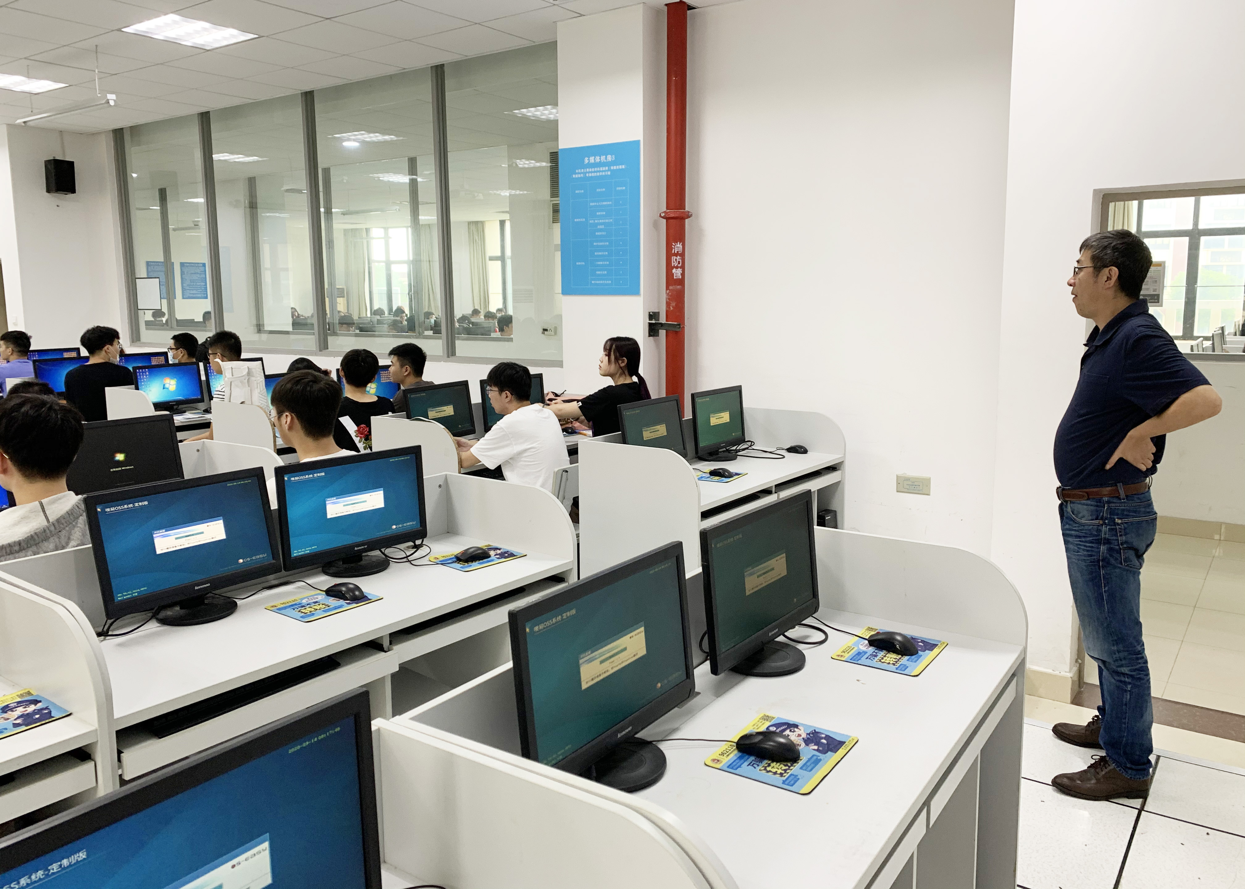 校领导一行分别来到教学楼、学院楼、实验室、计算中心、多媒体教室、中控室等地,向学院负责人了解新生入学报到、教学安排、设备使用、基建维护等方面情况,并现场查看了课程安排与课堂教学。