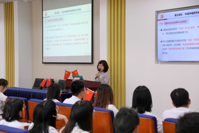 刘爱香书记首先带大家系统回顾了此次新冠肺炎疫情的基本情况。她指出2020年的新冠疫情是新中国成立以来我国遭遇的传播速度最快、感染范围最广、防控难度最大的重大突发公共卫生事件。面对如此重大突发的情况,中国共产党带领中国人民用1个多月的时间初步遏制疫情蔓延势头,用2个月左右的时间将本土每日新增病例控制在个位数以内,用3个月左右的时间取得武汉保卫战、湖北保卫战的决定性胜利。这些新冠肺炎疫情防控战的重大成果让全体学生党员更加懂得中国共产党为什么“能”,中国特色社会主义为什么“好”。