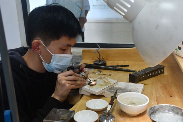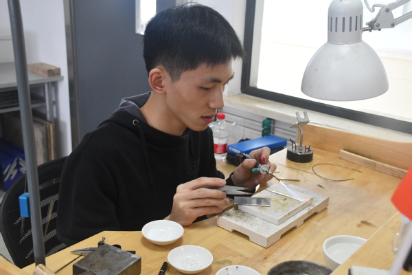 “珠宝加工”项目需要选手根据设计图稿要求,用手工加工的方法制作出用来佩戴的,可镶嵌珍贵宝石珠宝首饰作品、或者通过失蜡铸造方法进行一定数量的再生产加工首饰作品样板。因此他们需要具备准确还原珠宝设计师设计意图的制作技能,还必须具备准确解读设计师的设计原理念、合理运用贵金属材料的能力。