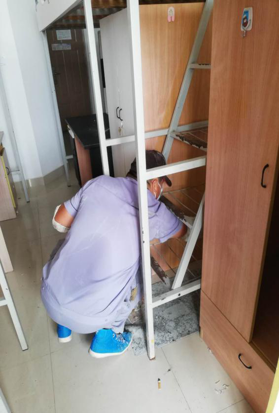 为确保新生顺利入住,维修保障中心在暑假期间便开始对新生宿舍进行维修和粉刷工作,共完成了570间新生房间粉刷,784个旧床架油漆粉刷,1354间新生房间的维修等工作。此外,维修保障中心的木工用一双双巧手为南十三宿舍的天台纯手工打造了木制围栏及15个木制花箱。