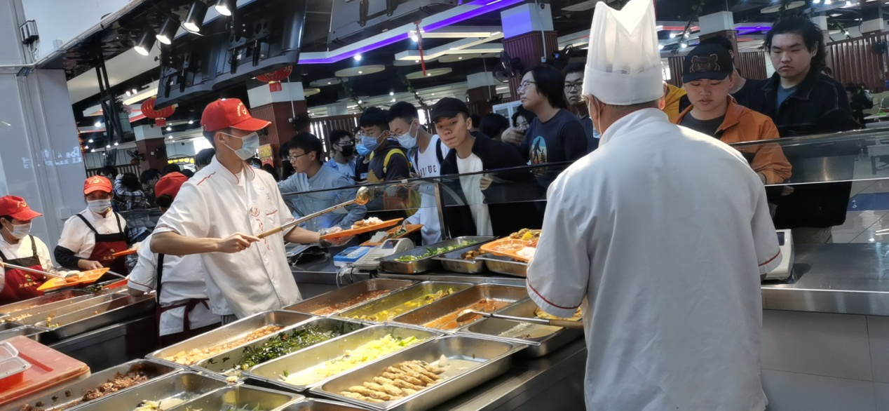 为给新生们送上暖心的校园“第一餐”,餐饮及商业服务中心精心准备营养丰富、种类繁多的菜肴,充分满足新生多元化的饮食习惯。因疫情防控要求和需要,新生家长不能进入食堂就餐,餐饮服务中心在南北食堂前搭建帐篷,摆放餐桌椅,为新生家长设立了临时就餐区域,推出经济实惠的各类菜肴套餐,使新生家长安心、有序的吃好入学第一餐。