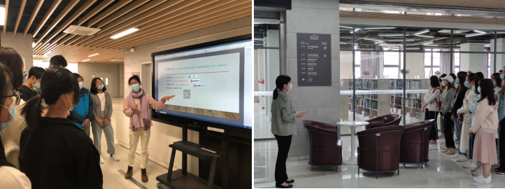 本次新生入馆教育人数约5000余人,采取以学院班级为单位,约90场、每场约30分钟。讲解馆员从“走进图书馆”为入手,分别在不同区域向新生们介绍了“图书馆概况”、“图书馆服务项目”、“图书馆资源分布及利用”、“图书馆规章制度”等内容,并对一些主要内容作了详细讲解。同学们边听边有秩序的参观图书馆,了解图书馆各功能区的分布情况。最后,安排新生参加“筑梦成长,与国同行——看视频抽红包”等3项线上活动。通过线上线下相结合,整个入馆教育活动轻松、流畅。