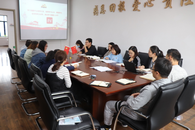 支部书记叶婕带领全体支部成员学习了《中国制度面对面——理论热点面对面·2020》,对其收录范围、主要思想、艺术特色几个方面进行了简要概述,并进一步细化了后续学习安排,布置学习任务。