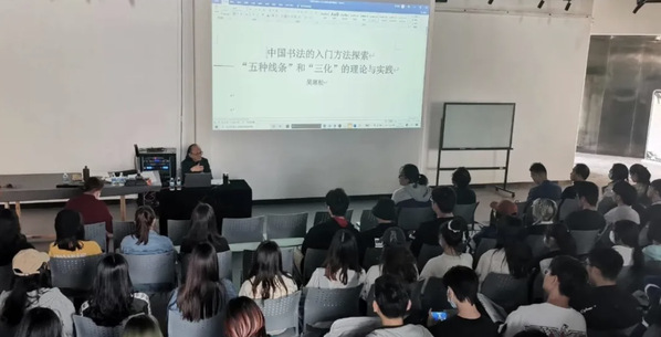 10月15日,大无限艺术学校校长吴寒松应邀到艺术设计学院开展“汉字书法的点线面及其空间设计”的专题讲座。艺术设计学院院长葛洪波出席,百余位师生参加了讲座。