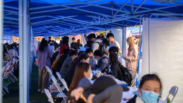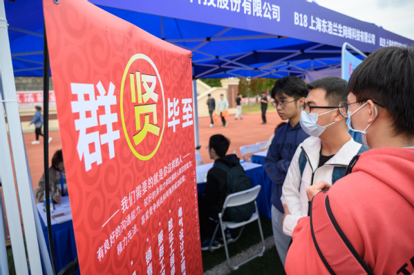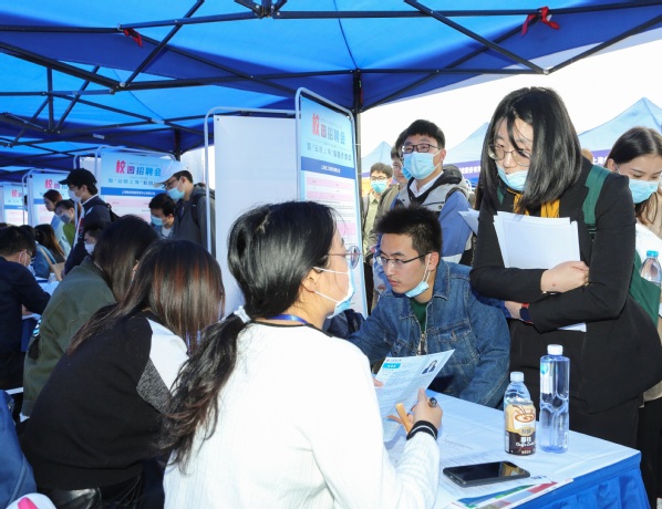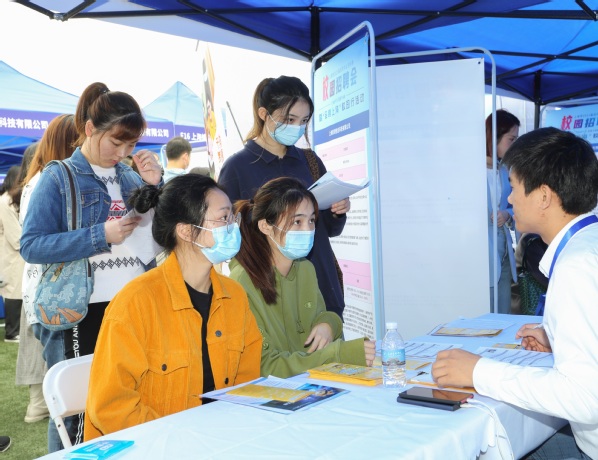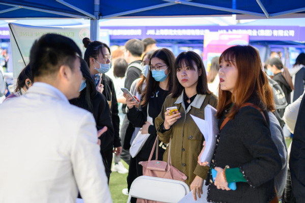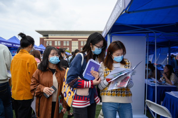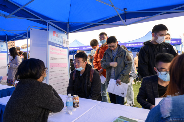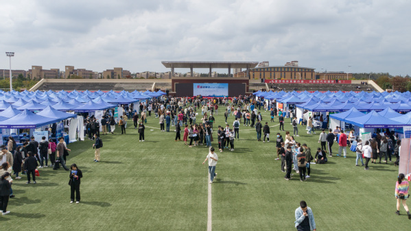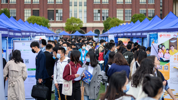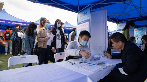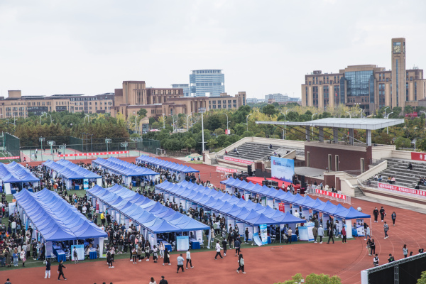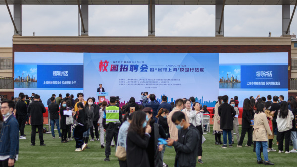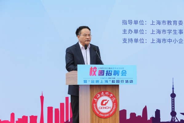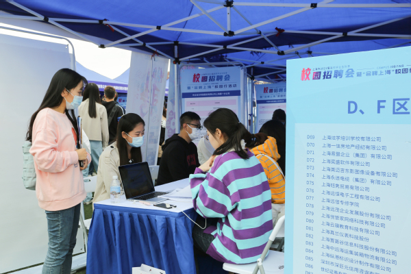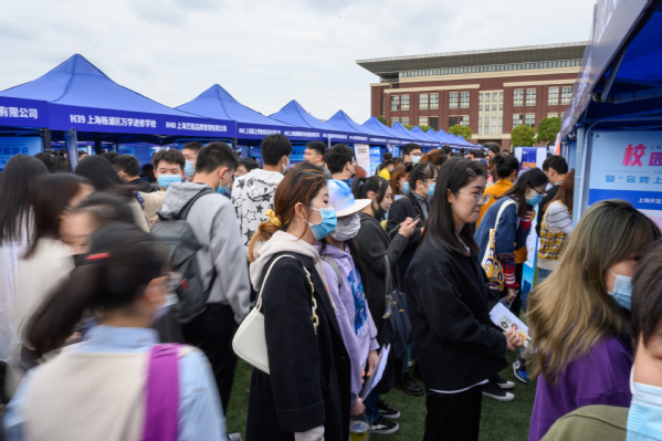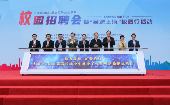 10月28日,“助力青春,沪梦启航”2021届上海高校毕业生就业工作系列活动启动会,上海市2021届高校毕业生秋季校园招聘会暨“会聘上海”校园行活动在上海建桥学院体育场举行。