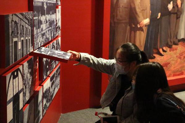 上海作为近代中国历史中最具代表性的城市,与中国共产党的发展息息相关。为纪念《共产党宣言》首版中文全译在上海出版100周年,上海历史博物馆推出了“从建党到建国红色文物史料展”。展览中有一面墙以翻阅书籍的样式,展示了各种语言版本的《共产党宣言》,吸引了众多同学的目光,大家纷纷驻足,用心品味老一辈革命家、共产党人的伟大情怀。