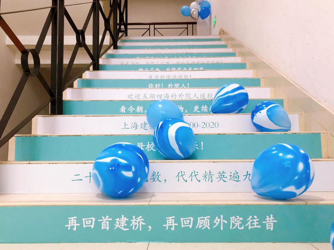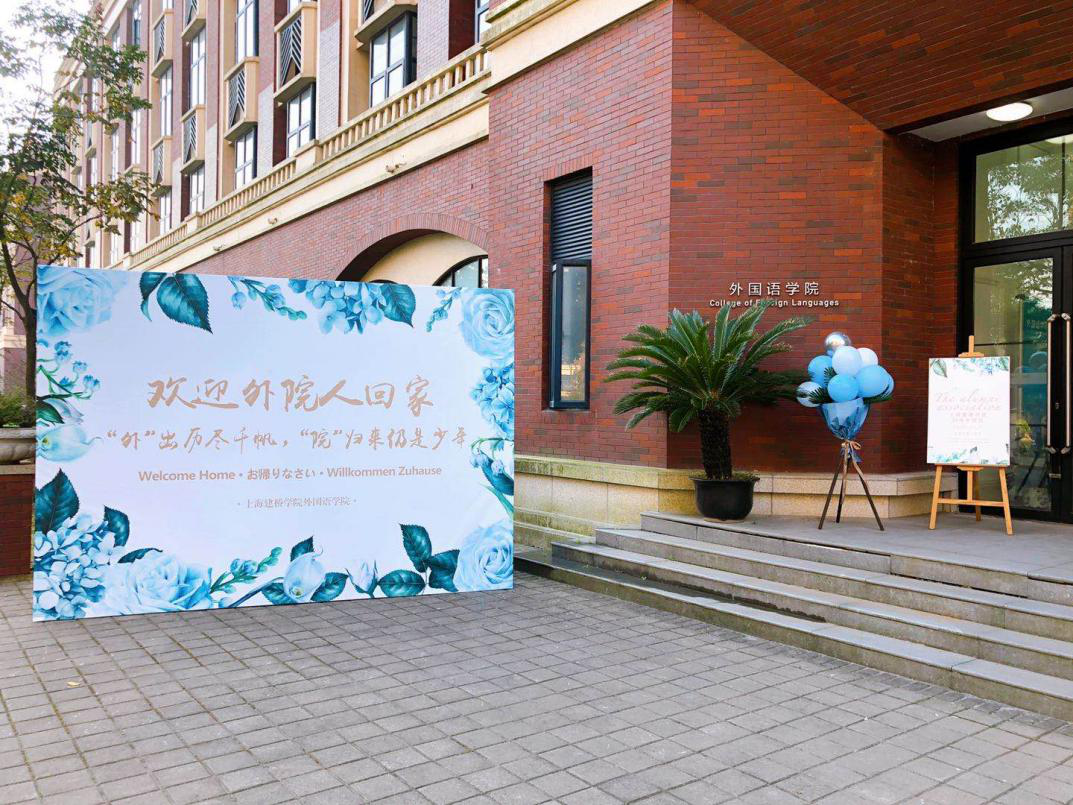 三级文化地标为学院特色文化氛围构建,今年学院校庆现场既有英日德三种语言写就的“欢迎回家”,也有感怀浓情的“‘外’出历尽千帆,‘院’归来仍是少年”;会场的布置既有气球、彩带、宣传横幅,也有西式的冷餐,体现了学院“会通中外,传承创新”的文化理念。