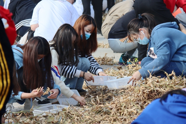 经过了一个下午的忙碌,商学院学子完成了相应课程,不仅如此,商学院还组织了部分学子到田地去捡拾因收割原因散落在田间地头的豆子,感受粒粒皆辛苦的内涵。