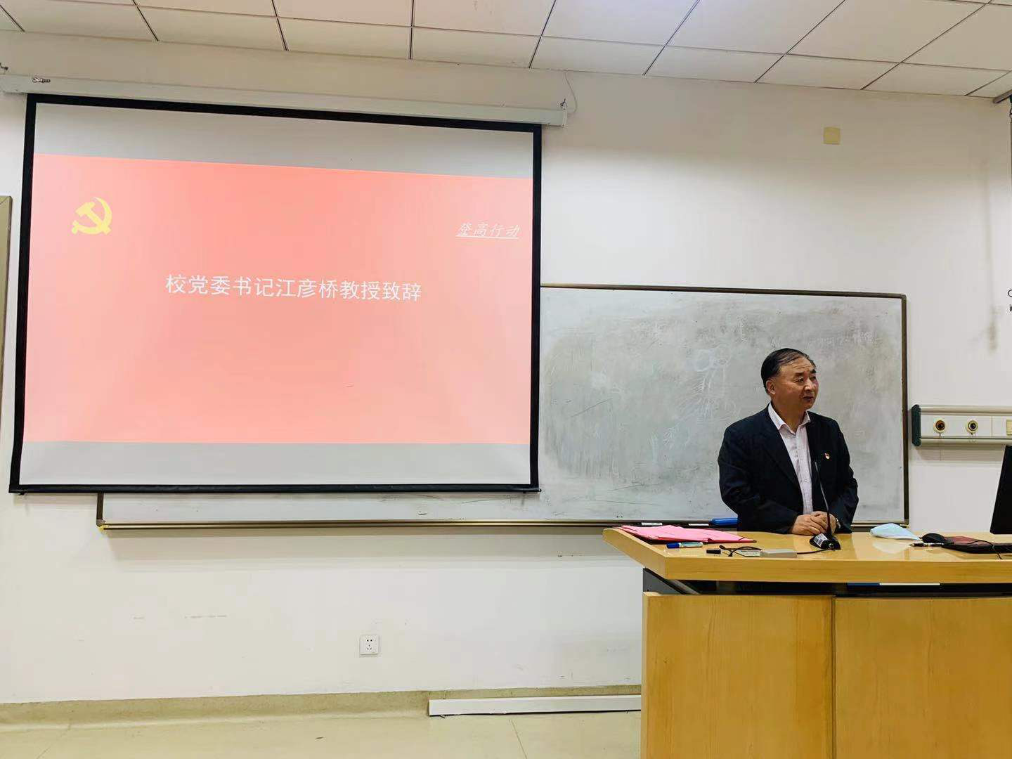 校党委书记江彦桥总结发言,他表示本次主题党日活动活动方式新颖,活动内容有意义,是落实“全员、全方位、全过程”三全育人非常好的典型案例。江彦桥书记分享了自身学习英语的经验,提出兴趣是最好的老师,他希望教师能够有效激发学生的学习兴趣,加强学习引导,扎扎实实的把工作开展好。希望同学们能够刻苦学习,不断提高自己的英语学习水平和综合素质。江彦桥对教师支部和学生支部共建结对表示赞赏,希望在此平台上教师与学生党员之间能够加强沟通联系,进一步密切和深化师生关系。