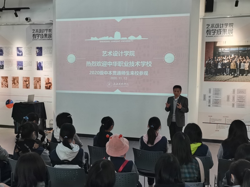 11月12日,中华职业学校与艺术设计学院视觉传达设计系联合培养的七年制中本贯通2020级学生来校参观学习。