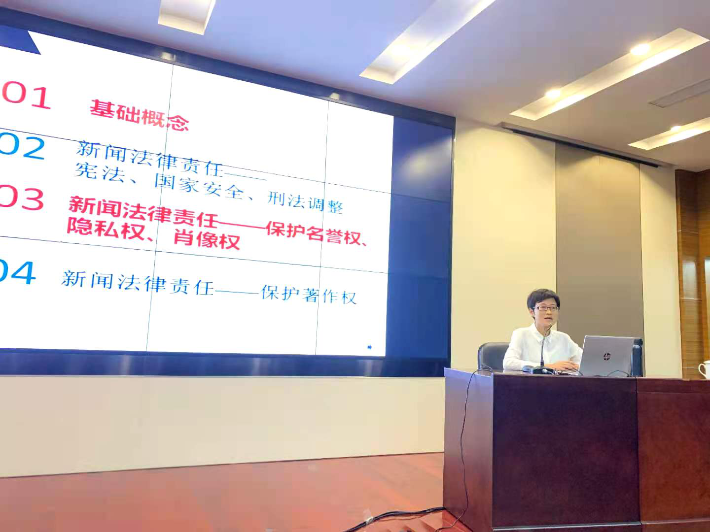 在专题报告中,徐磊教授从具有实效性的热点案例分析引出新闻传播行为的侵权责任问题,辨析了相关基础概念,对新闻法律责任——宪法、国家安全、刑法调整;新闻法律责任——保护名誉权、隐私权、肖像权;新闻法律责任——保护著作权等专题展开探讨,并结合《民法典》关于人格权的新规定,提出侵权防范对策。