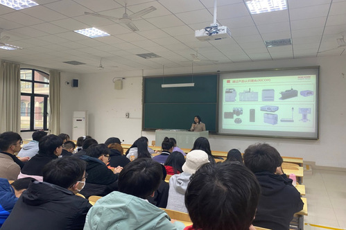 11月26日,职业技术学院商务日语专业在三教122教室开展“企业进课堂”系列活动。日本理光图像技术(上海)有限公司人事总监刘玉君作“商务日语专业在软件行业的需求分析”专题讲座。2020级商务日语及计应专业共计130名学生聆听讲座。
