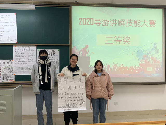 比赛获得了较好的反响,同学们表现出了极大的参与热情,比赛参照导游服务要求,整个赛项分为自我介绍、自选导游讲解和地方规定景点导游讲解等环节。参赛学生在赛前精心制作了手绘海报,用心撰写了导游词,并在比赛前多次解说排练。在比赛过程中运用课程知识,采用各种导游讲解技能和方法,模拟真实场景,锻炼专业技能。