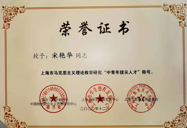 上海市马克思主义理论学科与马克思主义学院建设工作推进会12月16日下午在上海科学会堂举行。会上,我校马克思主义学院院长宋艳华获得上海市马克思主义理论教学研究“中青年拔尖人才”称号,是上海民办高校中唯一入选教师。
