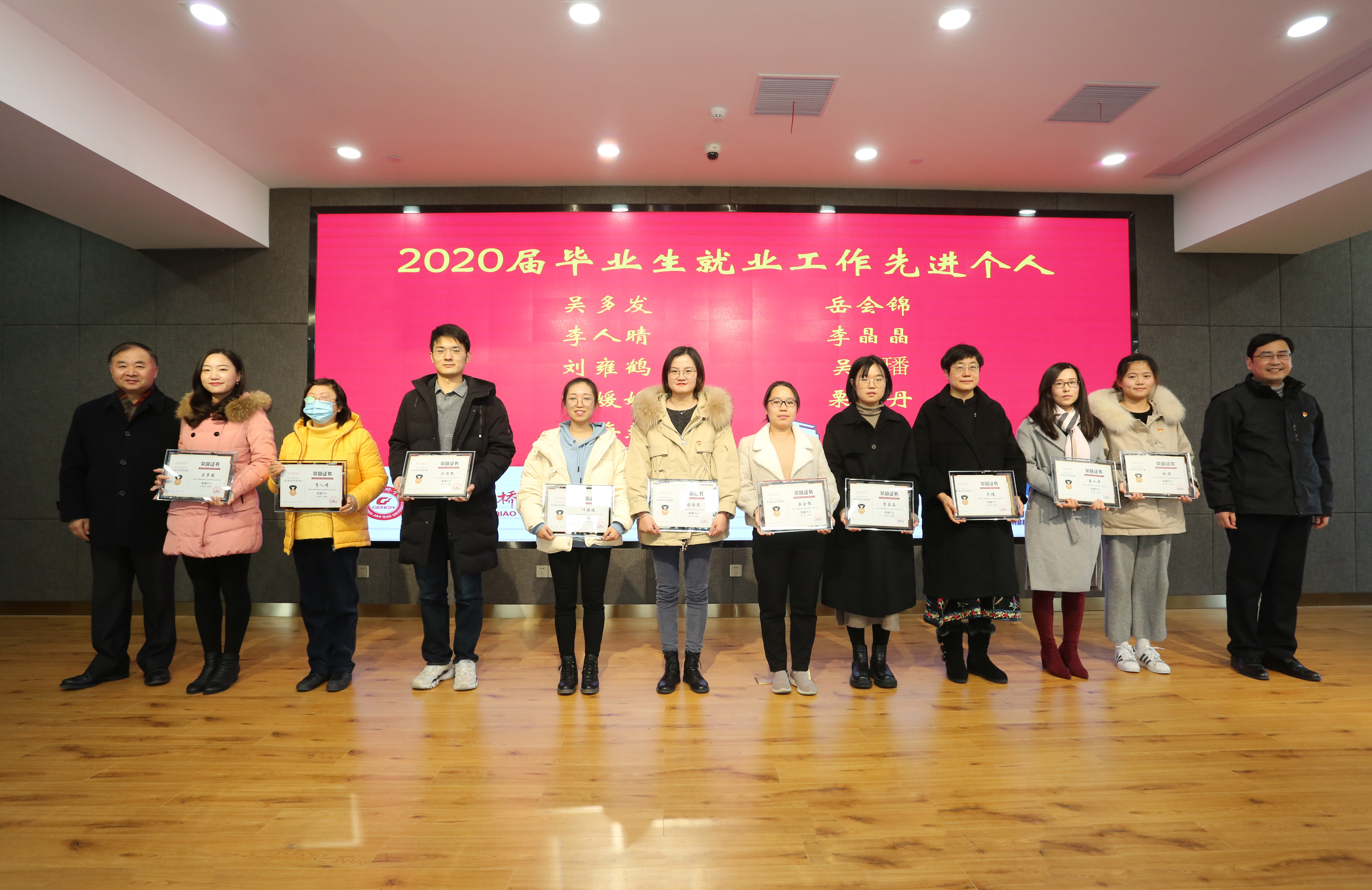 经学校就业工作领导小组研究决定,2020届毕业生就业工作评选出10名就业工作先进个人,10家优秀企业和10名优秀校外就业创业导师。校党委书记江彦桥宣读《关于表彰2020届毕业生就业工作先进个人、优秀企业和优秀校外就业创业导师的决定》,出席的校领导为获奖先进个人和集体颁发证书。