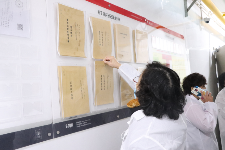 随后,在后勤服务公司领导及餐厅马经理的带领下,督察小组实地查看了厨房内外环境卫生、食堂工作人员的个人卫生、原料采购渠道与贮存、加工过程的卫生、冷藏、冷冻设施、仓库的管理以及各个工作间环境等情况,仔细查阅了食堂餐饮服务许可证、从业人员健康证、原材料入库验收及出库单、餐具清洗及消毒记录、餐厅6T执行情况台账。经过仔细检查,教工食堂已在饭菜保温、食品卫生等方面有了很大改进,但是在及时、准确记录台账等地方仍有待改进。