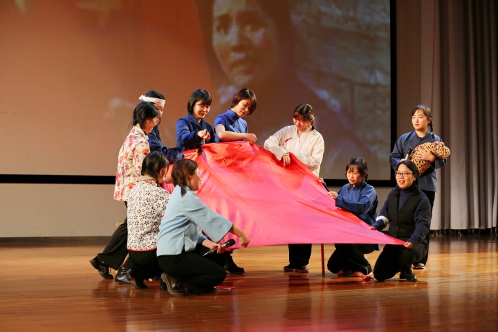 在党史剧演出环节,第一党支部和第五党支部再现了经典党史剧《绣红旗》、第二党支部合唱红歌《我的中国心》、第三党支部朗诵《红船、从南湖起航》、第四党支部演绎三句半《中国战疫》、毕业班学生党支部(2021)朗诵《没有共产党就没有新中国》。