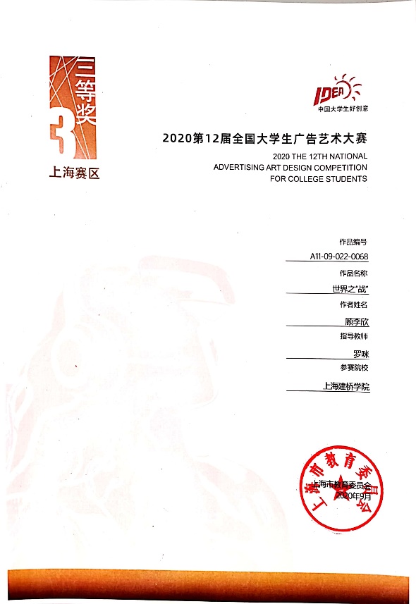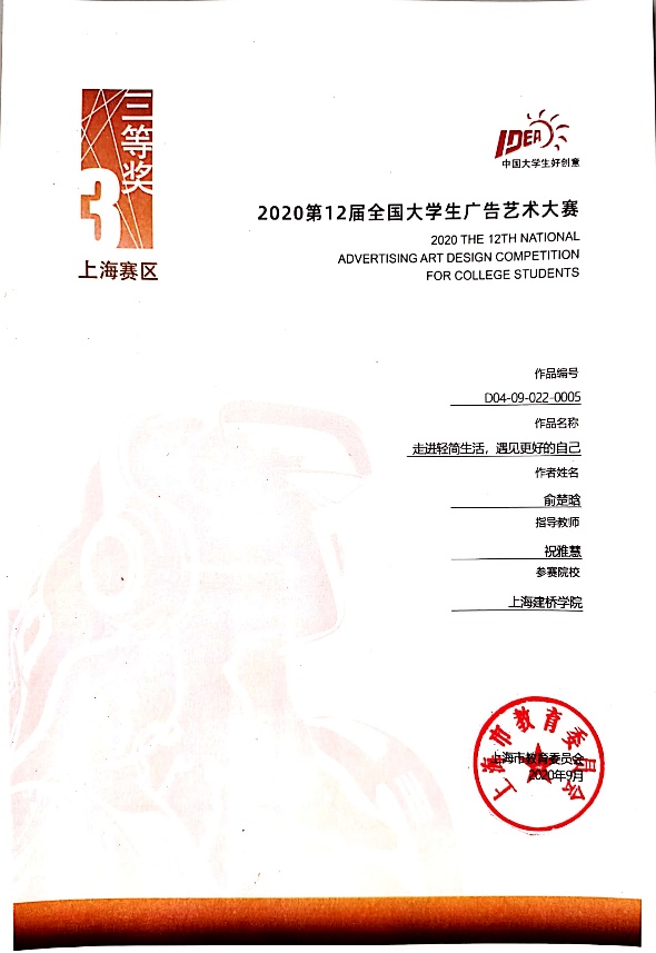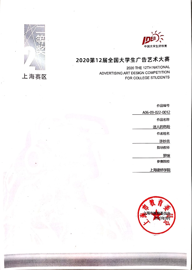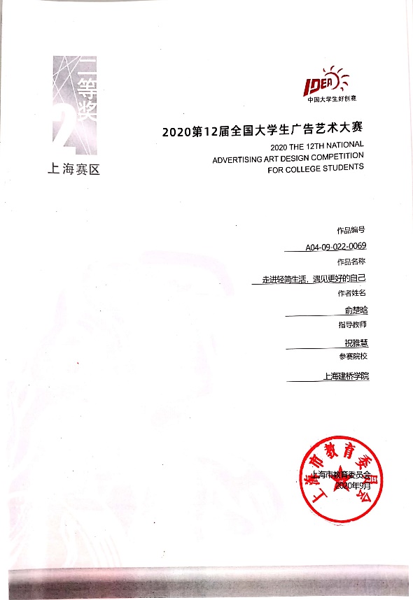 近日,艺术设计学院在第十二届全国大学生广告艺术设计大赛获得上海赛区二等奖2项、三等奖4项和优秀奖6项的好成绩。