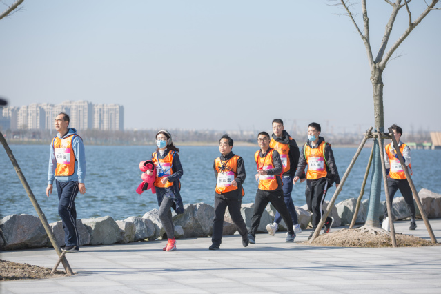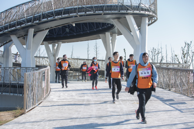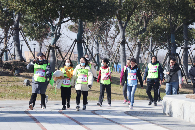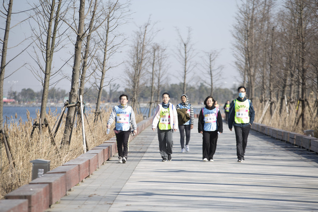 健步走过程中,大家结伴同行,一路上欢声笑语。有的相互交流工作心得,有的和好友聊聊家常。为了能让徒步活动增添一些乐趣,徒步协会还为本次徒步走活动做了路线规划和方案设计,为三组参赛队员在近6公里的行程中设置了5个打卡点,参与者需要在打卡点完成打卡。