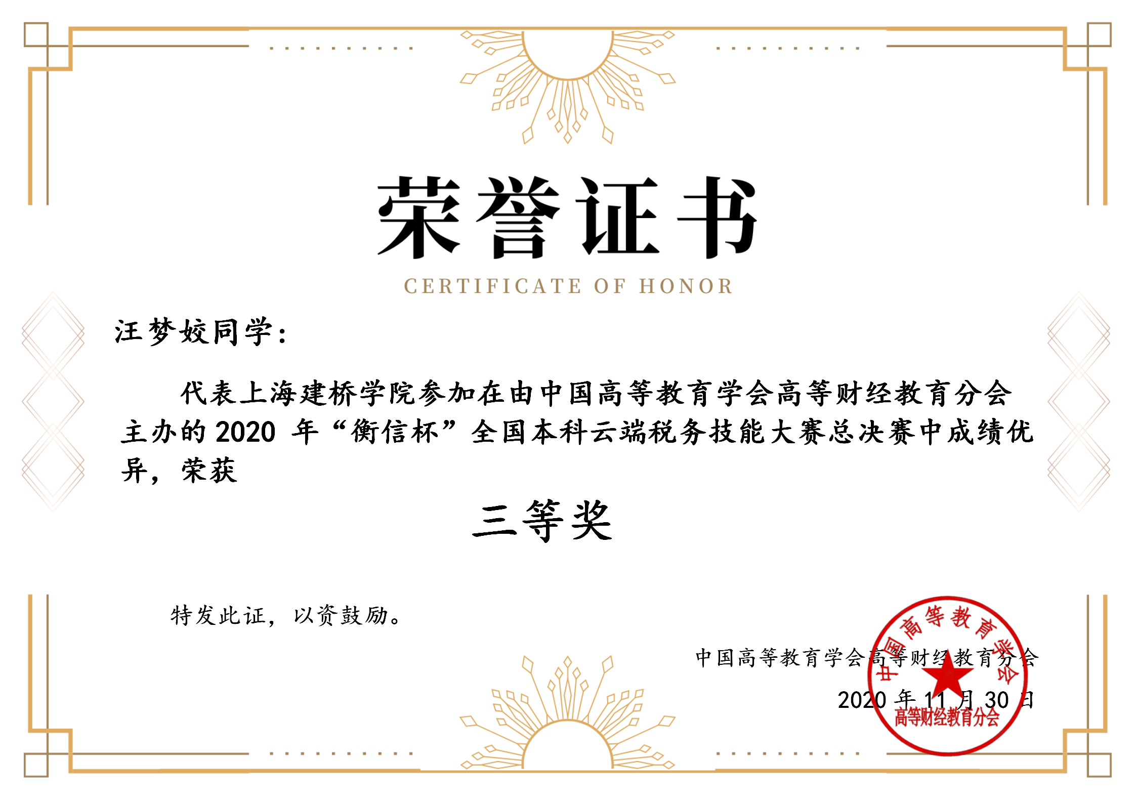 近日,“衡信杯”全国本科院校云端税务技能大赛落下帷幕,商学院会计系学生何婧玟、胡澜、王怡、汪梦姣、周皓栋经教师黄怡婕、徐洁指导在预选赛中获华东赛区一等奖,我校荣获华东赛区团体一等奖。在全国决赛中,何婧玟、胡澜、王怡、汪梦姣获全国三等奖,我校荣获全国赛团体三等奖。