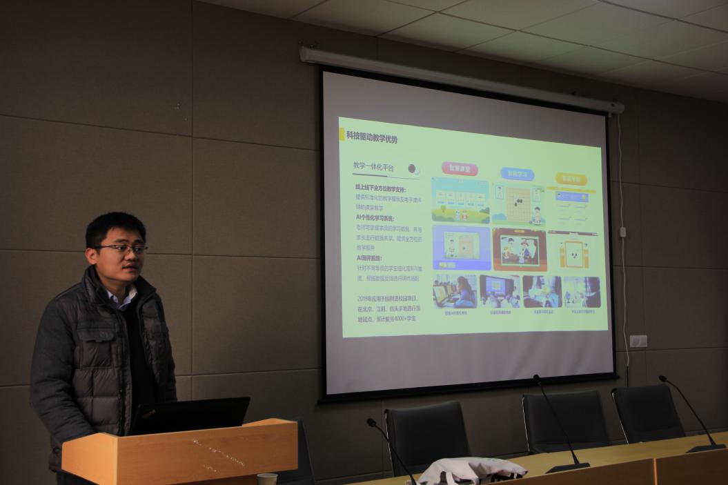 樊麾作为聂道的代表在新闻传播学院308会议室与传播学(围棋)专业、学前教育专业和围棋社的部分同学进行了交流,介绍了聂道的历史发展、教学师资和培训体系等基本情况,也交流了对人工智能的看法。冯修文书记向聂道一行介绍我校围棋系发展沿革和现状,着重谈到了专业人才培养和专业发展规划。