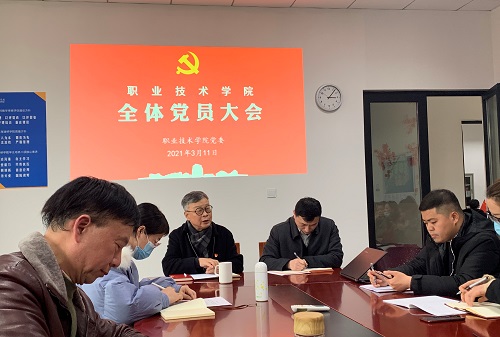 为迎接中国共产党百年诞辰,切实增强党员先锋模范作用和基层支部战斗堡垒作用,全面深入贯彻习近平新时代中国特色社会主义思想,学好“四史”,做到知史爱党。3月11日下午,职业技术学院党委组织召开新学期全体党员大会。