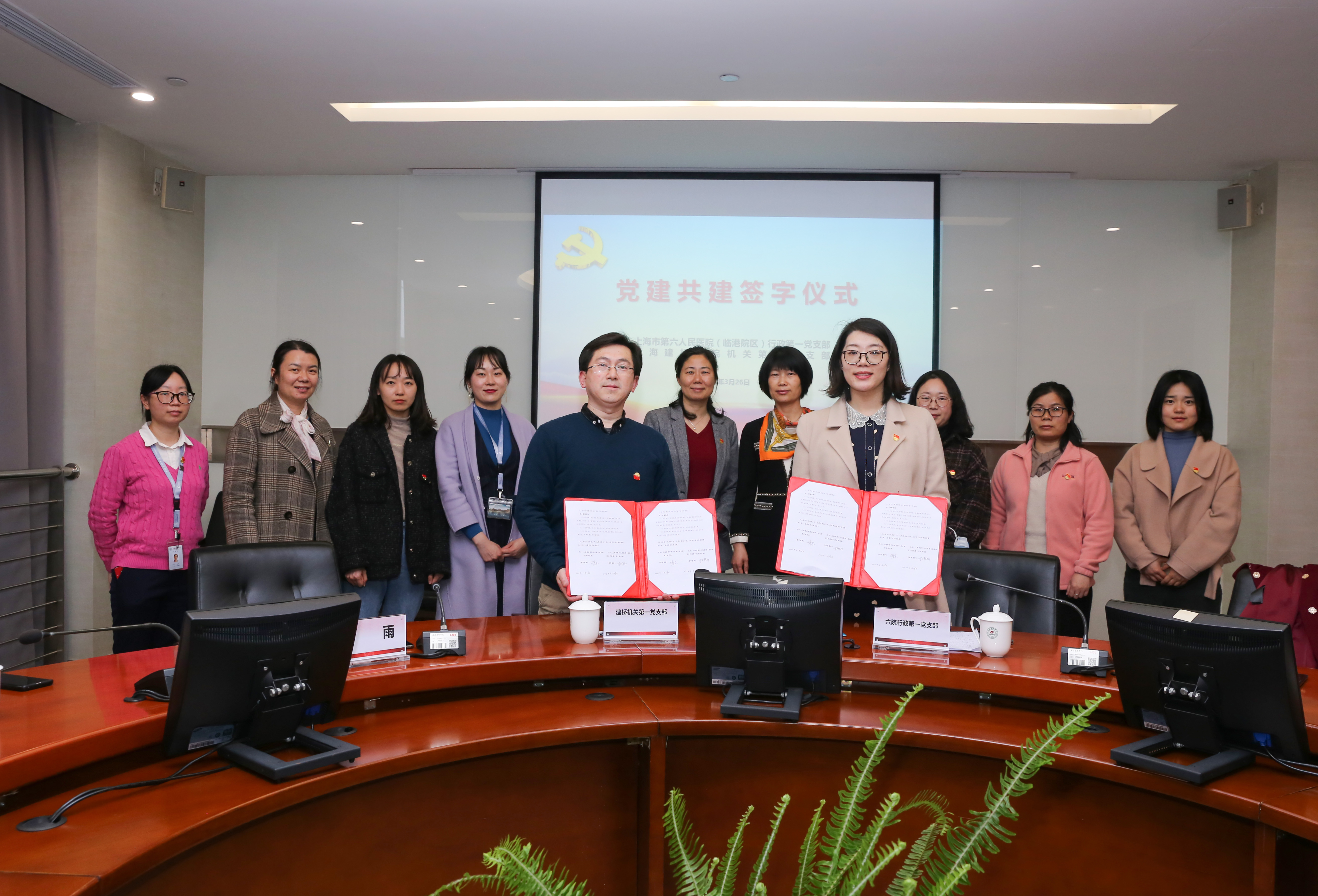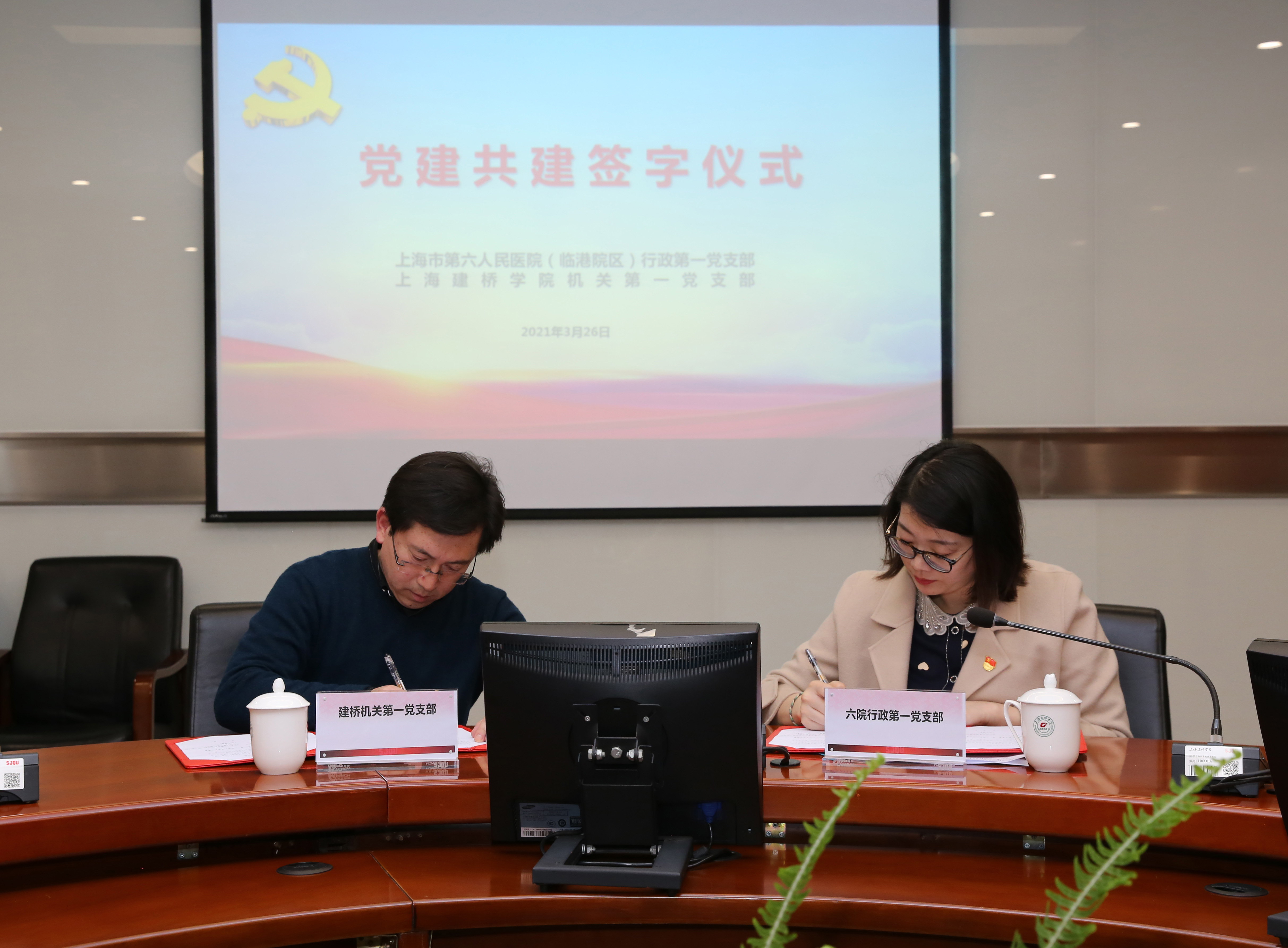 党建引领聚合力,结对共建促发展。3月26日,我校机关第一党支部与第六人民医院(临港院区)行政第一党支部在图书馆S417举行党建共建签约仪式,双方展开深入探讨,在党建活动、组织架构、人才培养、学科建设等方面交流意见并达成合作协议。校党委副书记、纪委书记夏雨同志参加,党支部书记胡东同志主持会议。