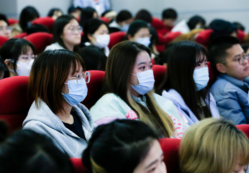 3月24日晚,一堂精彩的《中国的对外开放与‘双循环’新发展格局》形势与政策课在珠宝学院四楼报告厅开讲。2019级学生代表齐聚一堂,聚精会神地聆听校长朱瑞庭讲课。