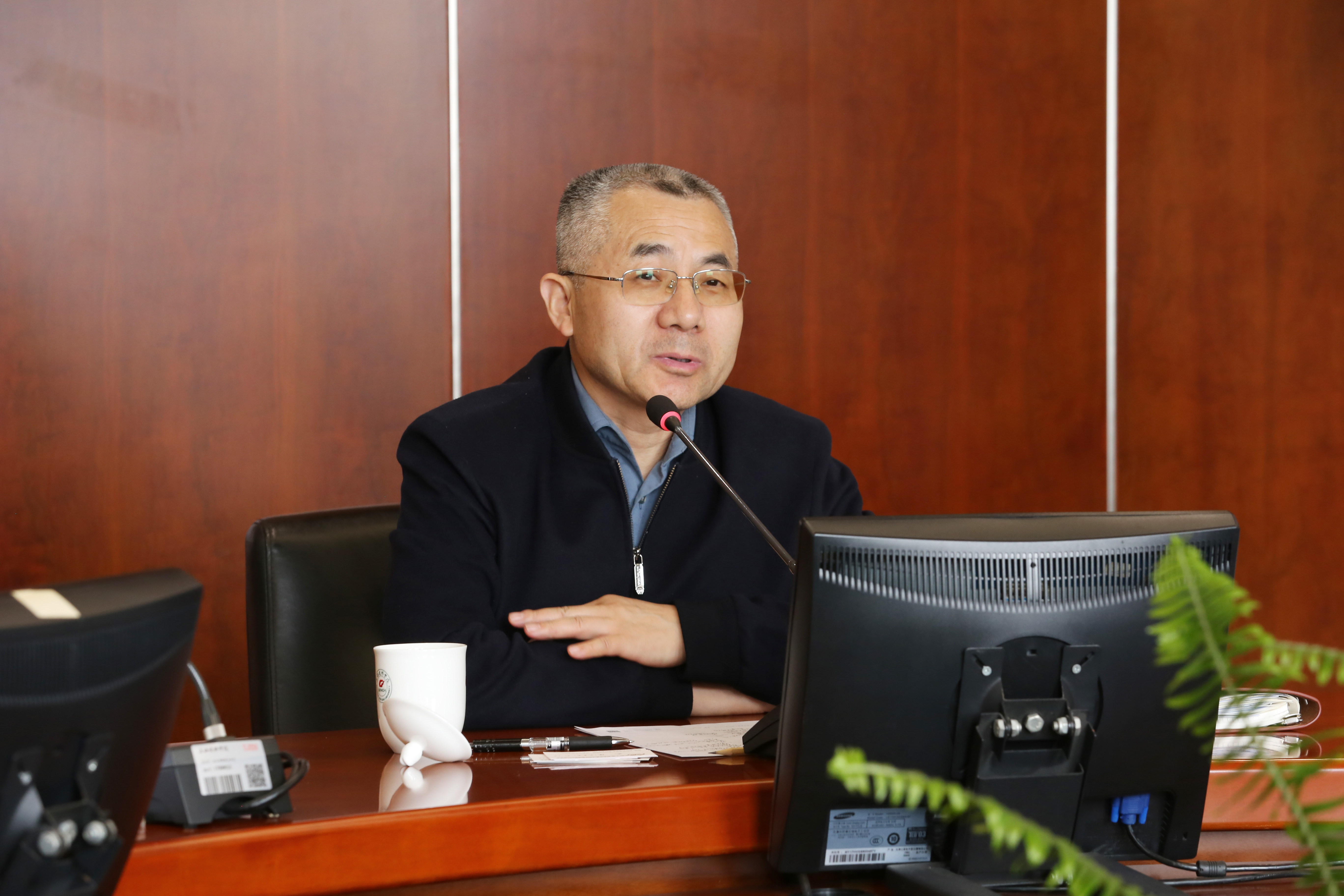 在图书馆S417会议室,朱瑞庭校长向武伟副主任一行详细介绍了学校的历史沿革、办学理念、办学成绩,重点介绍了学校推进产教城融合发展战略,深化产教融合的具体思路与做法。杨俊和副校长补充介绍了产业大学的建设方案和进度。